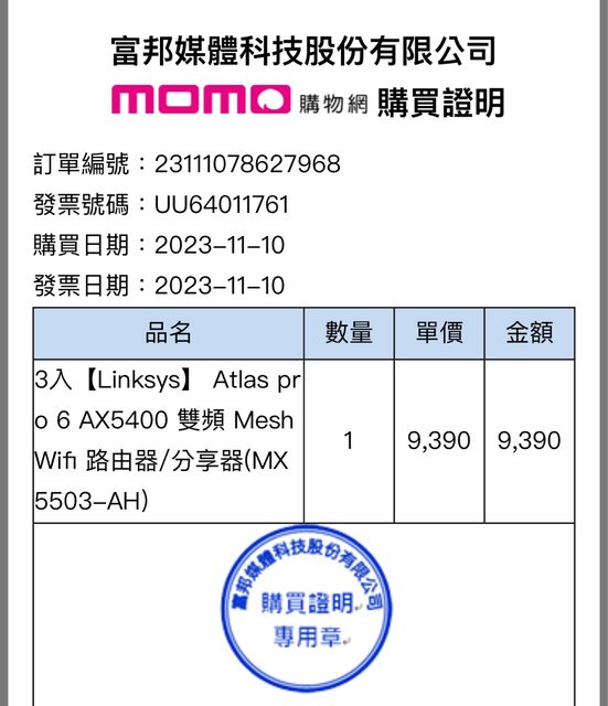 ◎品樣狀況:momo購入 2023-11-10 保固內 。搬家出售
