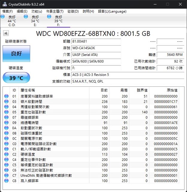 ◎硬體型號:WD red plus 8TB 硬碟 型號:WD80EFZZ