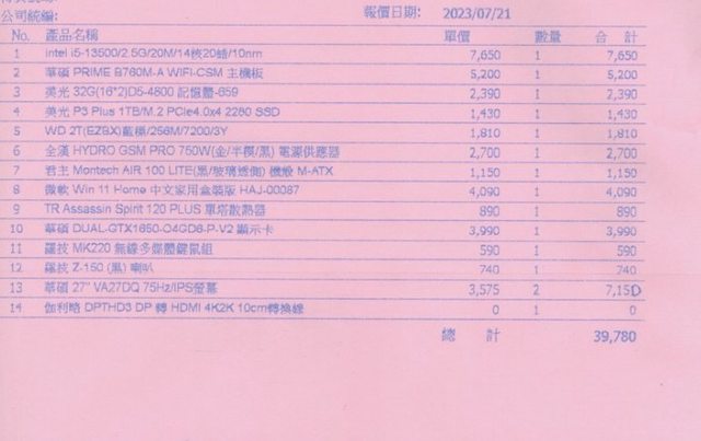 標題[賣//] [賣/全國/自取] i5-13500 兩組文書電腦