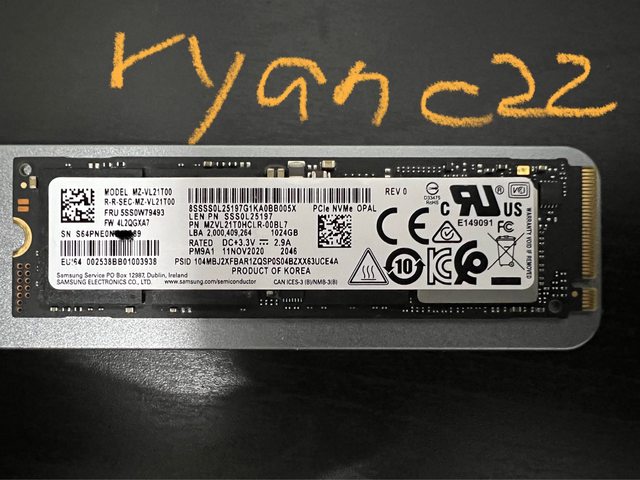 ◎硬體型號: Samsung PM9A1 MZVL21T0HCLR-00BL7 (Lenovo Thinkpad版本)