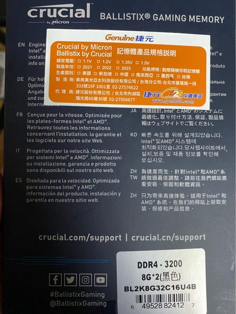2.美光Ballistix DDR4 3200 8g*2(已售出)