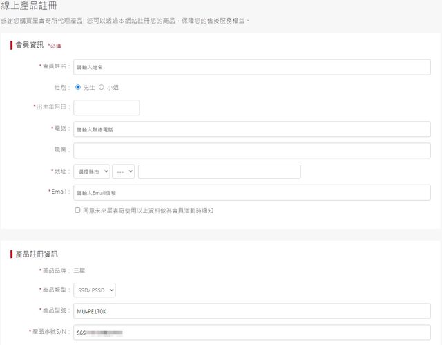 保固還沒註冊、可提供發票號碼註冊