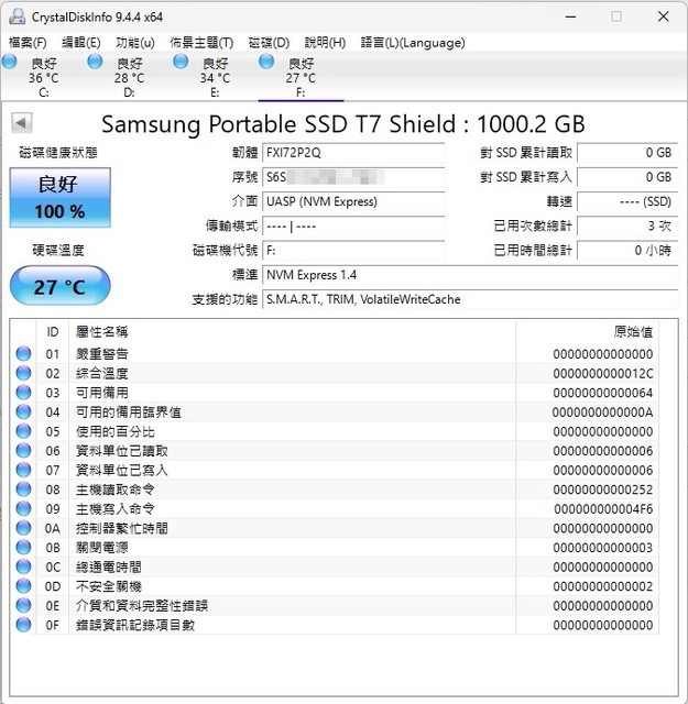 ◎硬體型號:Samsung T7 Shield 1TB