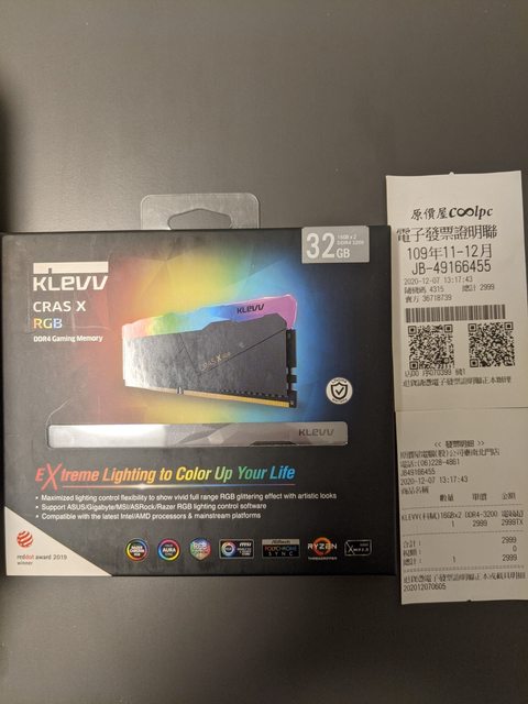 2.Klevv CRAS X RGB DDR4-3200 16G*2(已售)