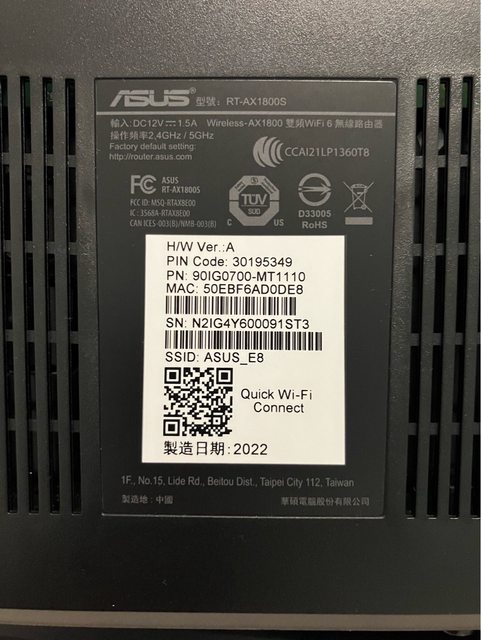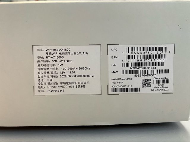 標題[賣/雙北/面交] ASUS RT-AX1800S Wi-Fi 6
