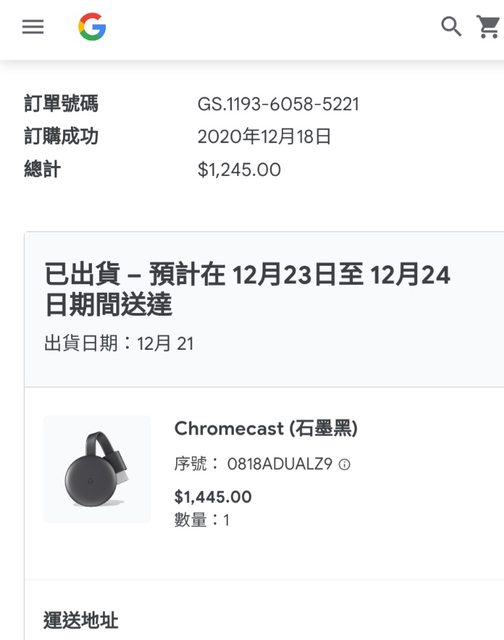 [賣/全國/皆可] Chromecast 3代 1080p 石墨黑