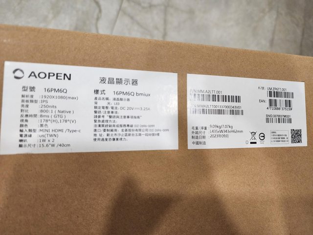 (已售出) 1. AOPEN 16PM6Q 15.6吋可攜式螢幕