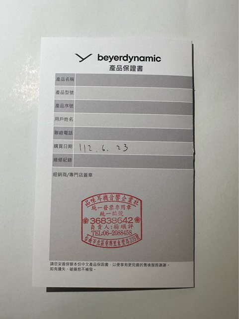 3.購買時間、地點:2023年06月23日台南品味音響購買
