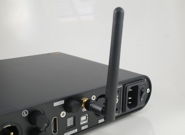 ▼ 機身背面中間的部分具備 USB、同軸、AES、光纖和 HDMI(IIS)2 和藍牙等數位輸入