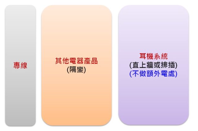 耳機(音響) -> 直上牆壁或排插(不做其他電源處理)