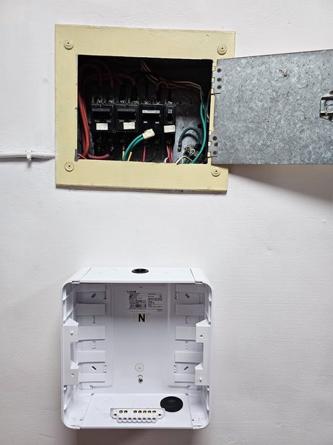 後面拉線的時候因為又敲了一些牆壁導致整個明電箱上都是灰
