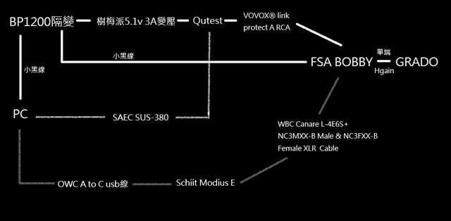 系統配置大概就這樣,簡單即可。XLR線本要用Oyaide的,但線太粗太硬空間不允許走線,