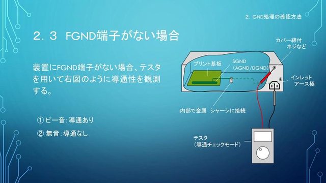 確認器材的「AC地端」與「FGND參考點」是否導通