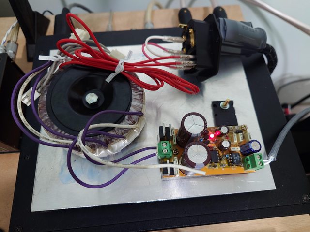 然後先用家中的工具鑽個鋁板來固定變壓器跟PCB,不過沒接地,不小心碰到板子會麻麻的