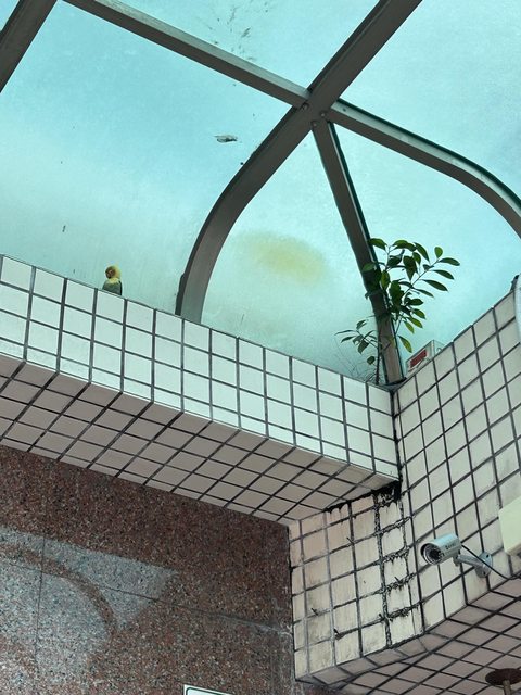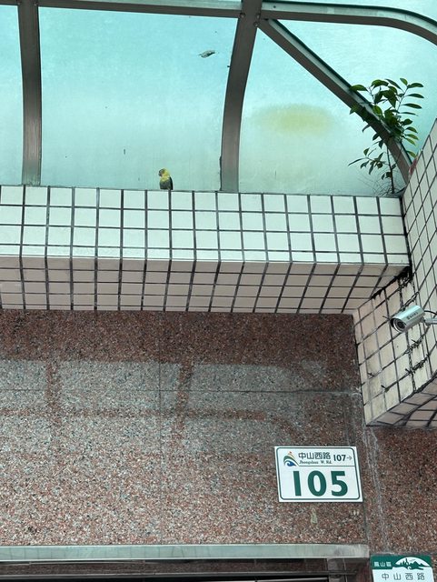 鳳山中山西路與文聖街交會的台新銀行發現一隻鸚鵡