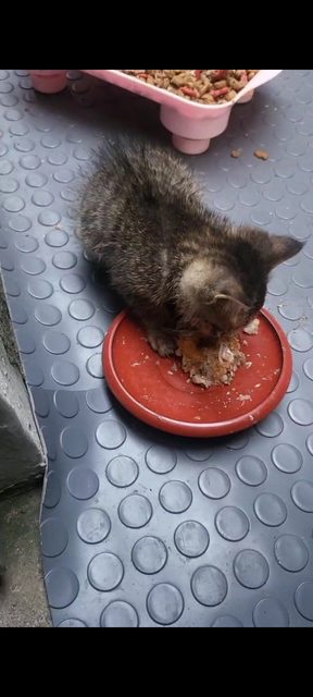 其中一隻前幾天的颱風因為太弱小被貓媽媽放棄了,已收養。