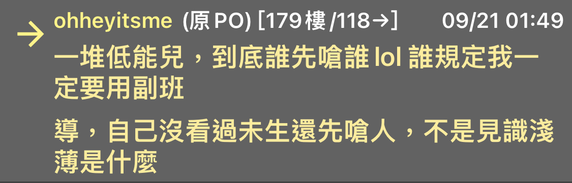 噓 Sirius1129: 原po問題很好,毀在推文情商不足。a大一開始的推文我 09/21 07:15