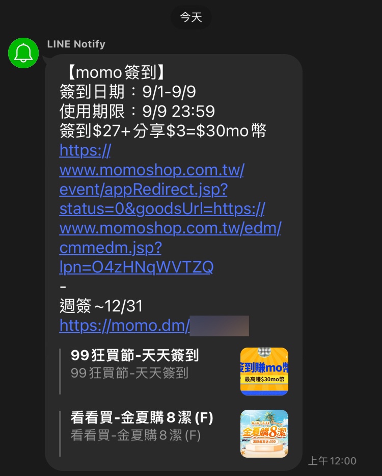 → kkkk1234: 直接靠LINE Notify每天傳通知到群組 大 61.231.9.26 09/01 17:16