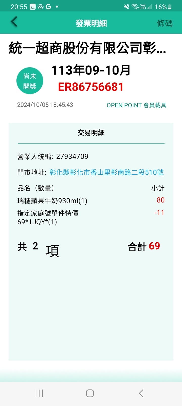 → jeff888chang: 元用悠遊卡結帳,也有拿到7點OP。 36.227.253.137 10/05 22:55
