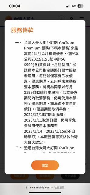 → graysky1107: 台哥大網頁顯示4個月 油管顯示一個 101.9.131.49 10/06 15:59