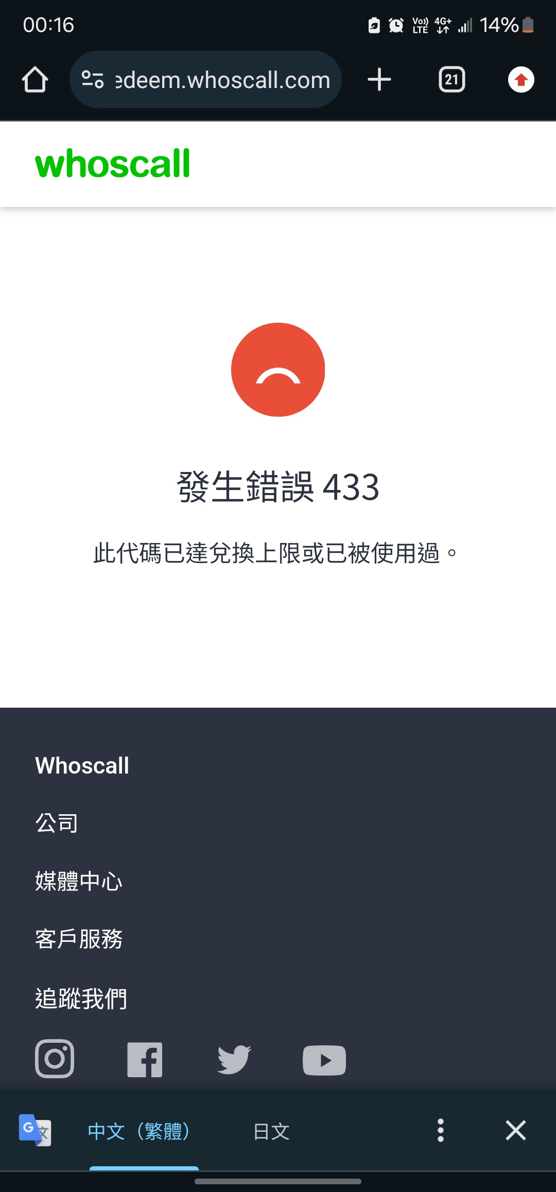 推 yufat: 此代碼已達兌換上限或已被使用過 111.82.70.234 10/11 13:21