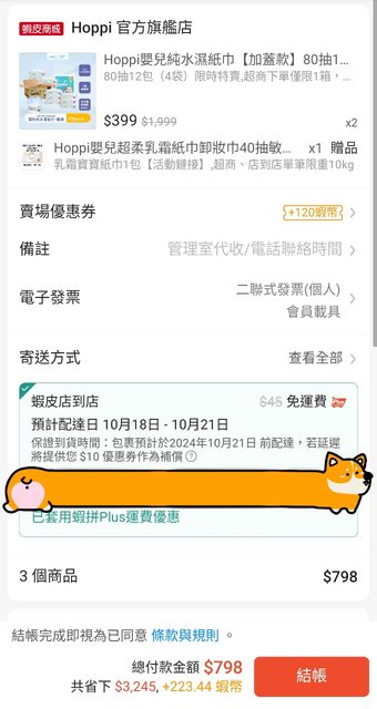 → suntribe: ,8/19購買4袋12包,一樣在是蝦皮hoppi 1.34.170.171 10/18 11:07
