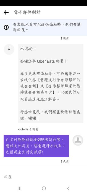 → jcsb1021: ubereat 要認定未付現至少要有雙方留言 49.159.182.172 10/24 09:17