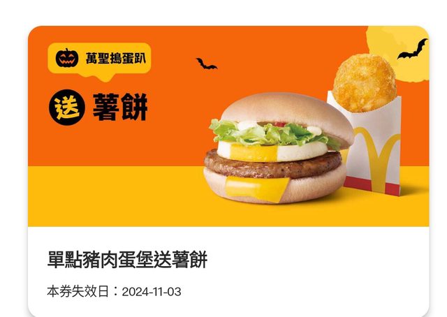 推 martian117: 火腿蛋堡送薯餅223.137.106.143 10/28 15:42