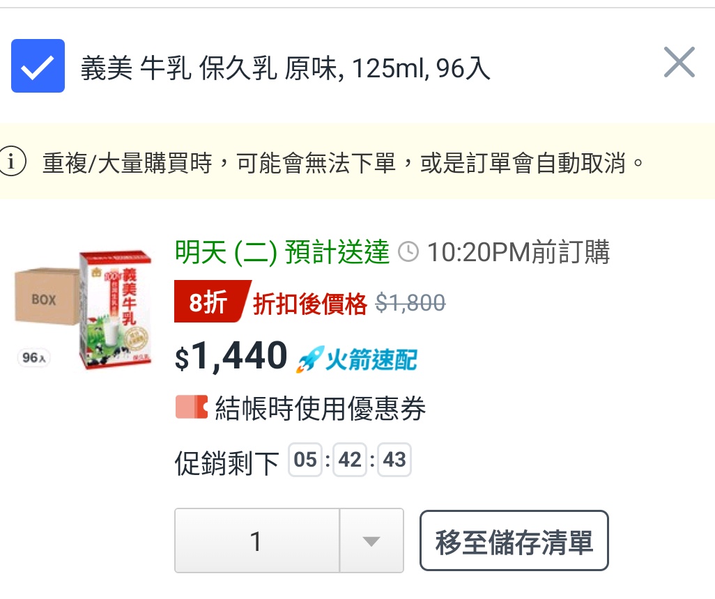 推 lch1218: 義美保久乳各平台都缺貨,買了二箱折完 223.138.154.36 10/28 19:22