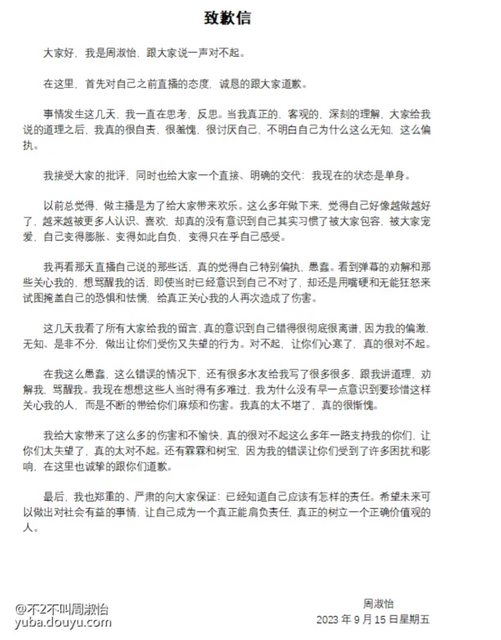 推 carrey8 : 斗魚違約金了解一下 周道歉不意外 09/15 18:30