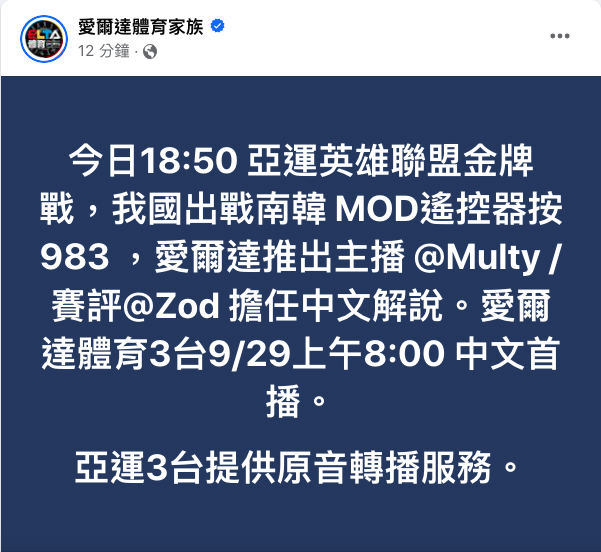 → YuiiAnitima : 亞運三台原音 體育三台D-LIVE 09/29 01:57