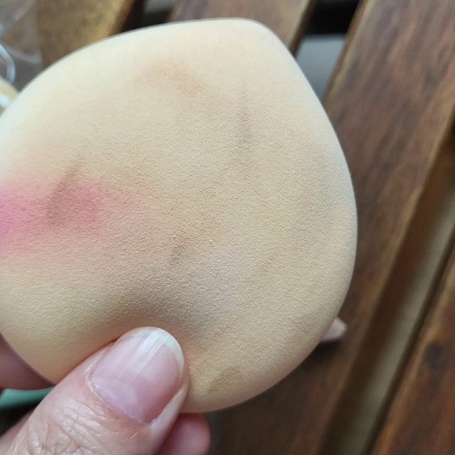 舒服,因為很大塊又軟,所以可以很快就把底妝拍開拍好,細節的地方,就直接把粉撲捏
