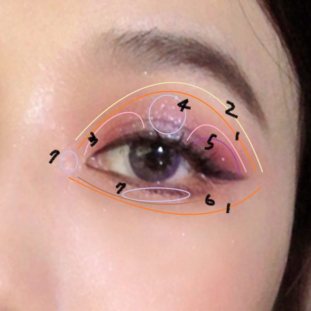 7> 紫紅色亮粉 疊加眼頭&黑眼珠正下方