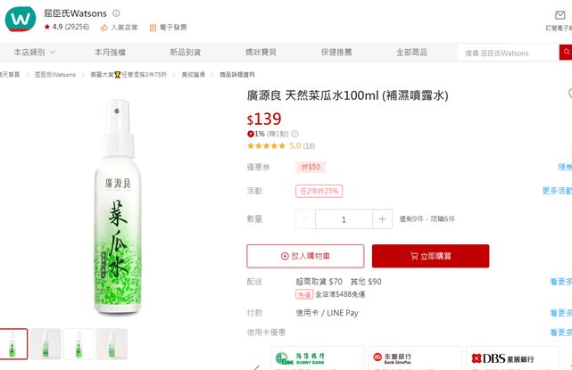 心得:經典不敗的台灣品牌菜瓜水,因為是純植物水,用起來就是水感不黏膩,噴瓶+小瓶身
