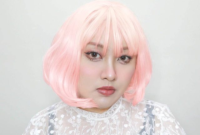 然後為了配合粉紅色頭髮 所以用眼影的粉紅色畫眉毛