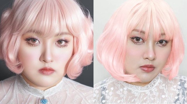 這樣好像配粉紅髮比較好看耶!也更像AI米