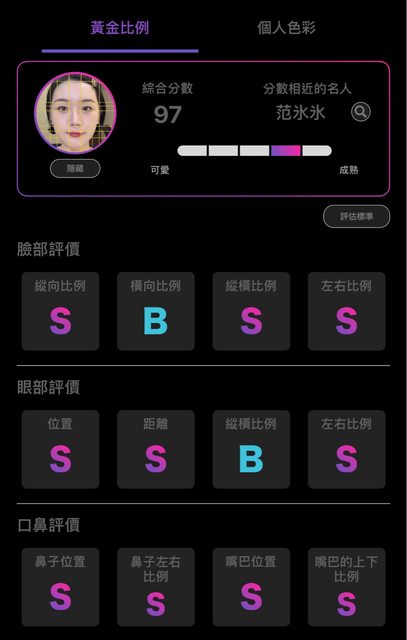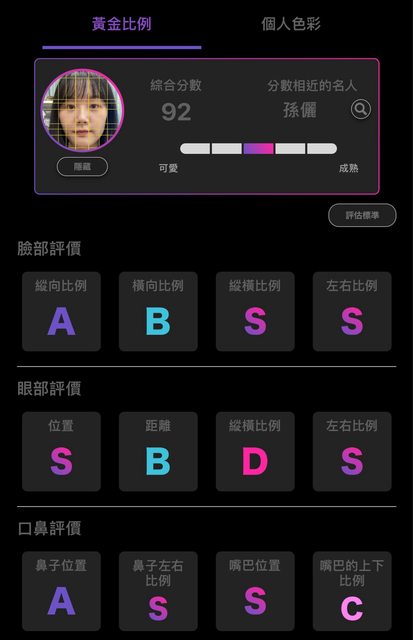 稍微看了一下評分標準後,我發現主要問題出在眼睛和嘴巴,眼形不夠長、下嘴唇太薄