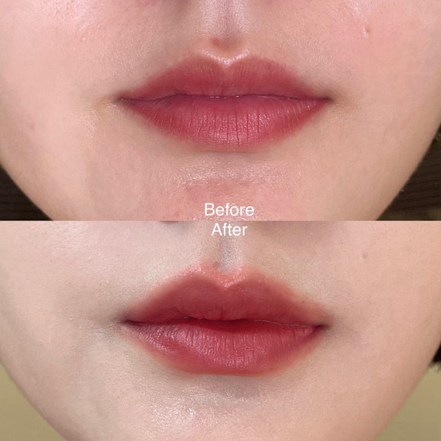 我的上下唇都偏薄,所以我會將上下都往外暈染出去,尤其是下唇可以更往外擴