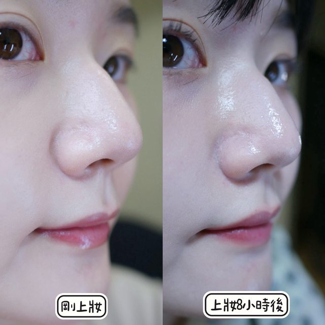 整體的差別就是遮瑕力消失,鼻子附近出油量增加