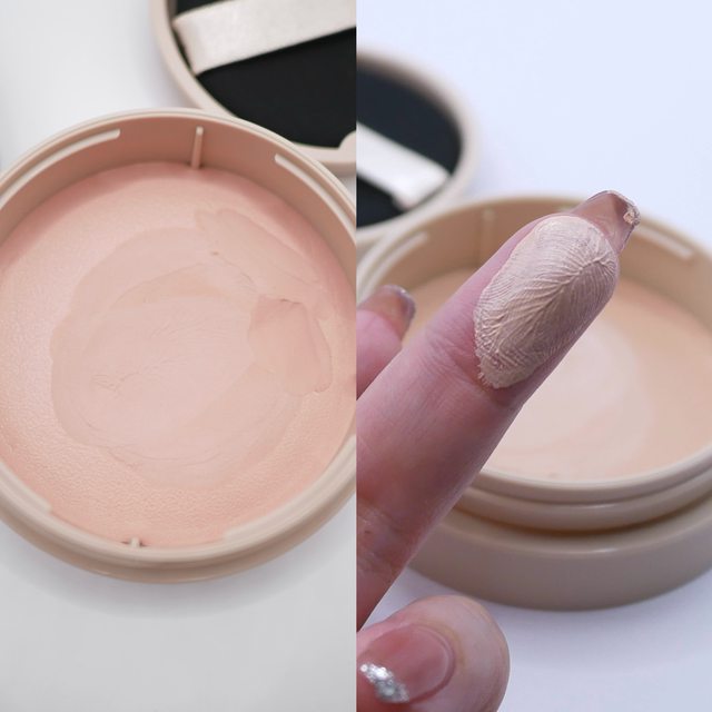 水粉餅的粉體很特別,就像剛從冰箱拿出來的奶油一樣,看起來是固態,但用手觸碰後就