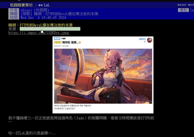 標題Re: 韓網熱議 打TPE前BeryL還在專注他的本業