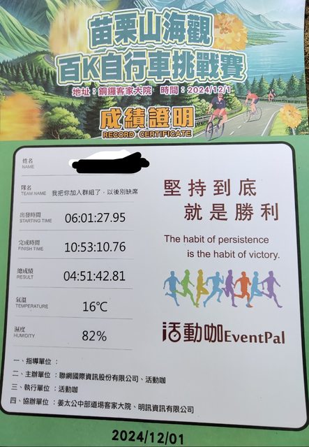 騎不快但還騎的蠻開心的(排名150但沒寫有幾人參賽==)