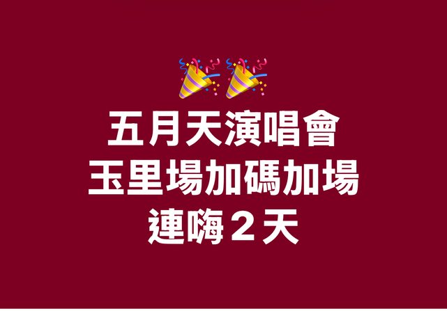 標題[取暖] 五月天演唱會 玉里場加碼加場 連嗨2天