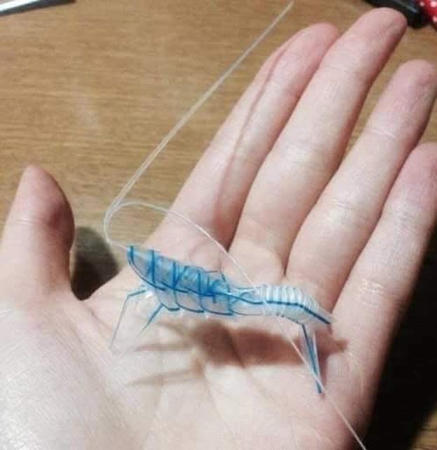 我立馬拿出前幾天親手做的吸管蝦,讓他知道我的才華