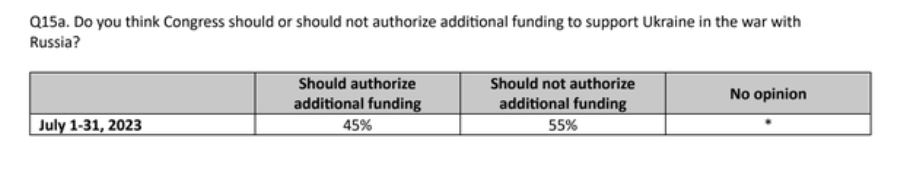 → Eriri : …而且已經有將近一半的共和黨支持者覺得美國支援烏 08/17 00:09