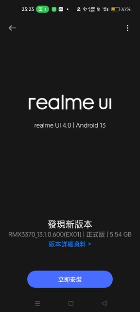 這次的GT eno2的更新版本號碼是RMX337_13.1.0.600(EX01)正式版,這次的容量也略大,