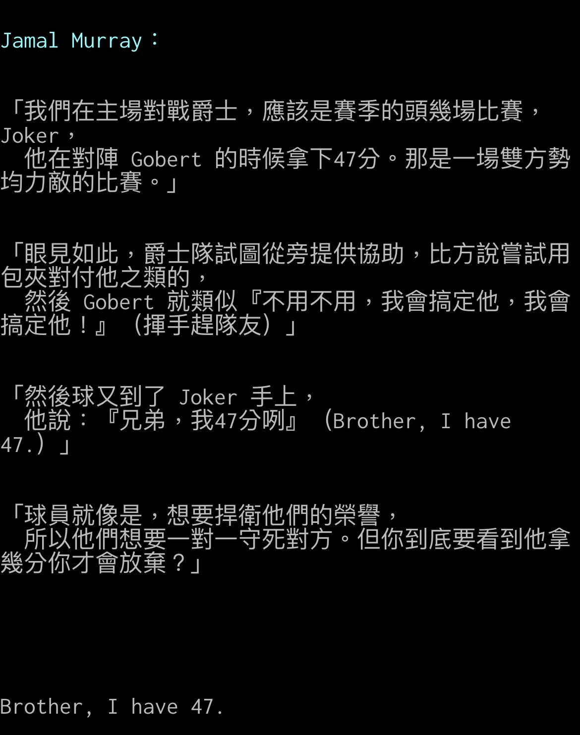 → kingroy : 要打的條件也不難,把握好Jokic深入禁區後的回合 05/15 20:55