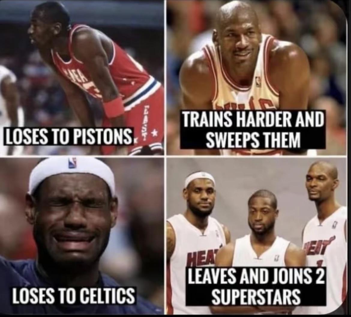 推 egghard29 : 我記得有簽名檔是在講喬丹打不贏努力練到打贏,姆斯 05/17 06:30