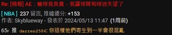 推 LukaDoncic77: 其實沒到高幾個檔次啦,只是單純有幾個風度特差的 05/20 16:13