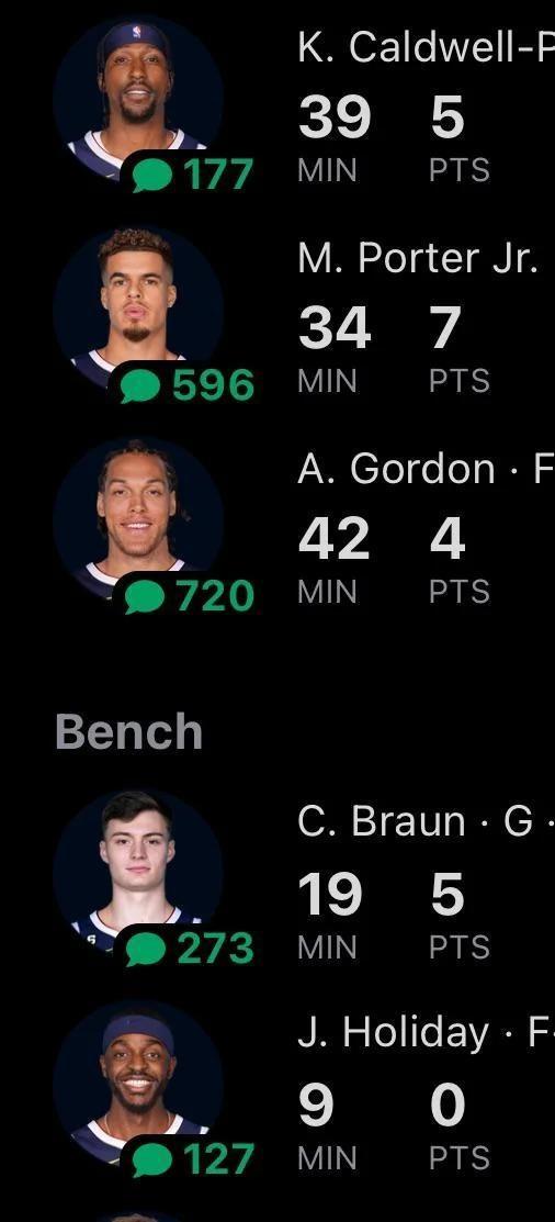 → darren2586 : 金塊是弱了啊,替補火力沒人頂上,去年有Brown跟J05/20 16:15